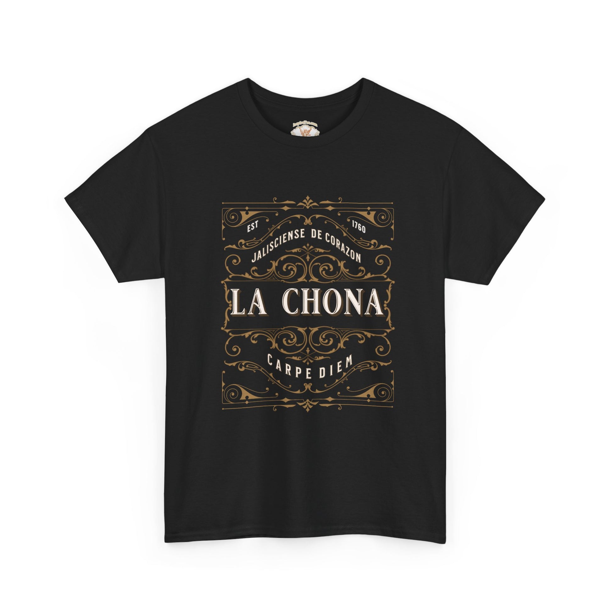 This sturdy, classic crewneck tee carries a vintage-inspired graphic that reads “La Chona” framed by ornate filigree and warm, aged tones. The weighty 100% cotton fabric holds prints crisply and wears in comfortably over time. It’s the kind of shirt you reach for when you want something dependable with personality — a simple silhouette that puts the design front and center and pairs effortlessly with jeans, a worn jacket, or layered for cooler nights. Soft at the collar, reinforced at the shoulders, and made to last, this tee feels lived-in from the first wear while keeping its shape after many washes.